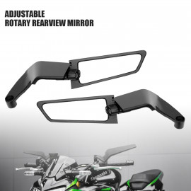 Kawasaki Universal Aerodynamic Rotary Adjustable Mirrors Motorcycle Wind Wing Side Rear view Mirrors Metal Body Black Rotate able